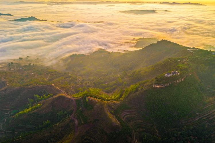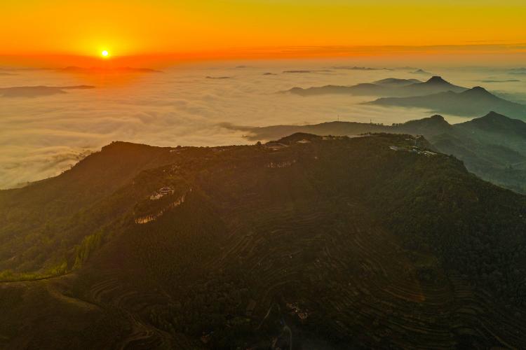 面对着茫茫大山,我心中留下一幅永恒的画卷:在无尽的云涛之上,一座金色的城池如幻影般浮现,它不属于过去,也不属于现在,它只属于每一个被其壮美所震撼的清晨。那不是一座死去的城,而是一个永远在日出时分重生的、瑰丽的梦。(张子秋/图文)