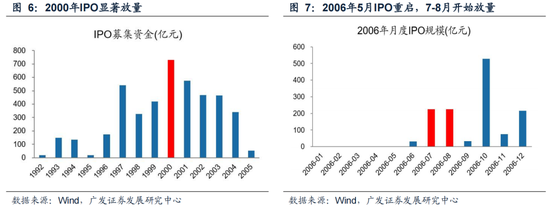 2006年5月IPO重启(中工国际发布招股书),7-8月IPO显著放量,从6月的30亿规模提升至200亿之上。流动性冲击之下市场也再度下跌。