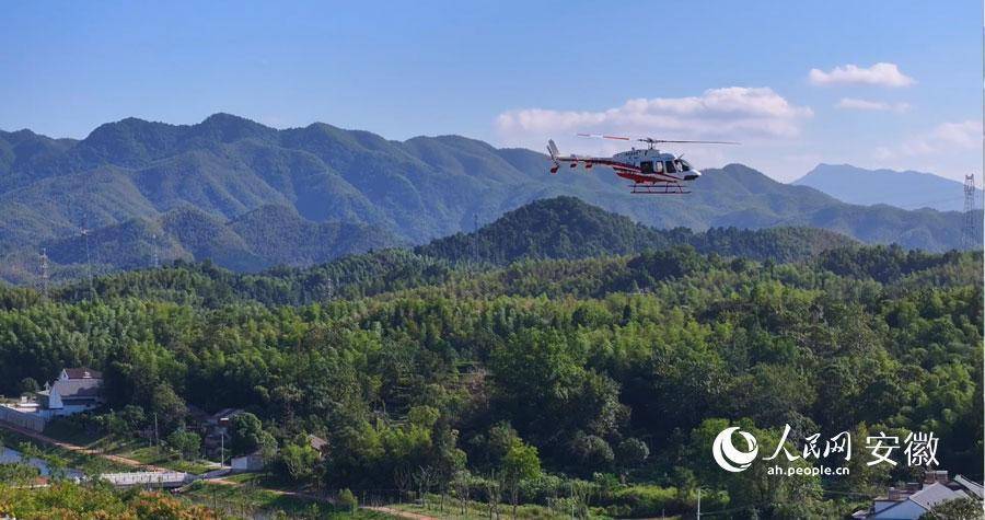 直升机穿越大别山区秀美景色。人民网记者 王锐摄